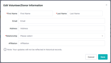 - Obtain signatures or proof of signatures. If the volunteer/donor is physically present, guide them to sign directly into the "Signature of Volunteer/Donor" box.