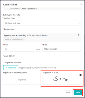 Lastly, add your own signature in the designated "Signature of Staff" box and proceed to click "Save".
