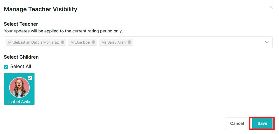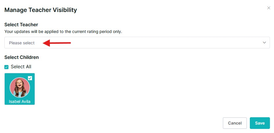 Type or select the names of the additional teachers, then choose the children you want to add those teachers to.