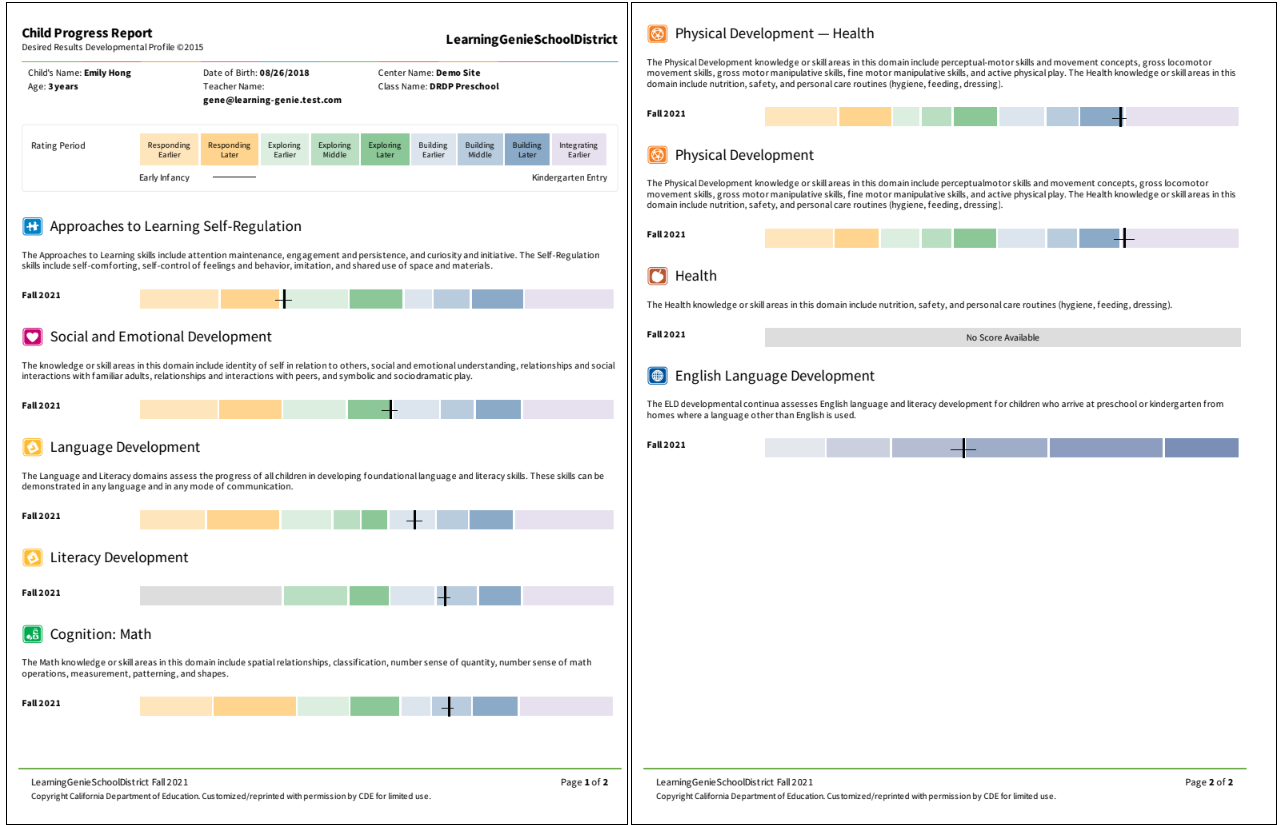 These reports align with DRDP Online and CA State Requirements, offering accurate insights into children's assessments.