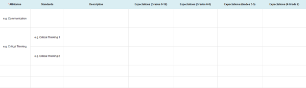 • Under the Portrait of a Graduate tab, review and edit actionable expectations for each Grade Band