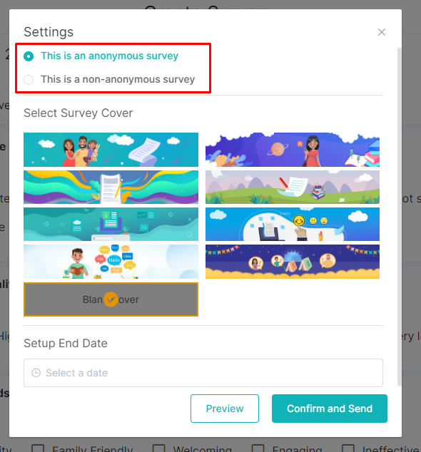 4.1 Confirm whether you want to send an anonymous or non-anonymous survey.