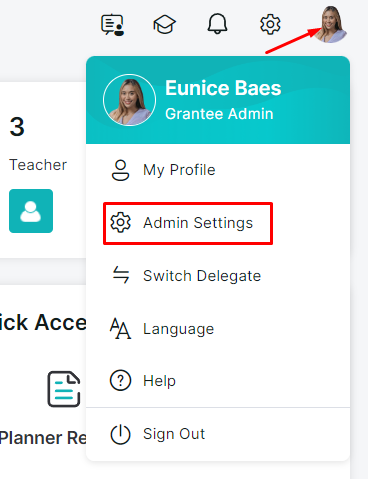 2. Click your name in the top-right corner, then click "Admin Settings".