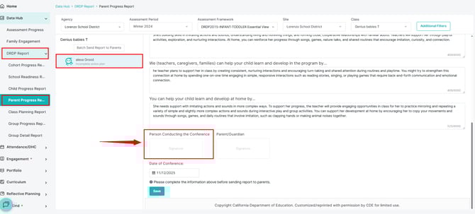 Data Hub > DRDP Report > Parent Progress Report - Click on the “Action Plan” tab
