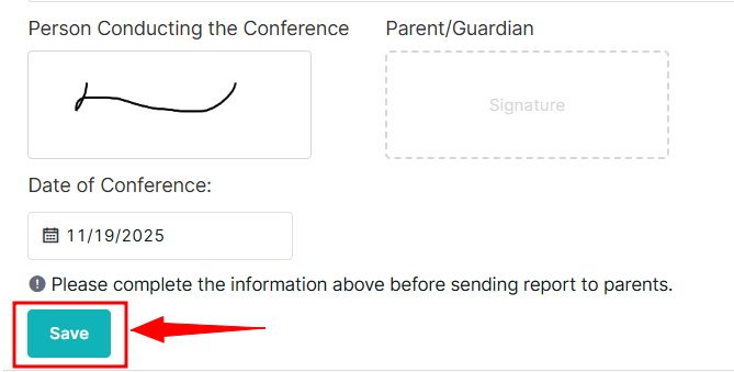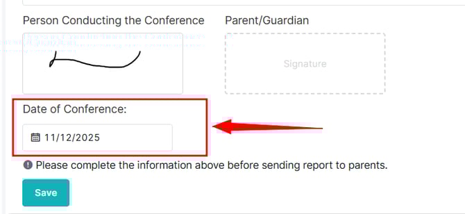 6- Once the conference date has been selected, click Save to confirm your entry.
