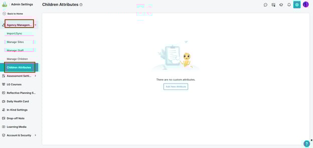 1. Go to Admin Settings → Agency Management → Children Attributes