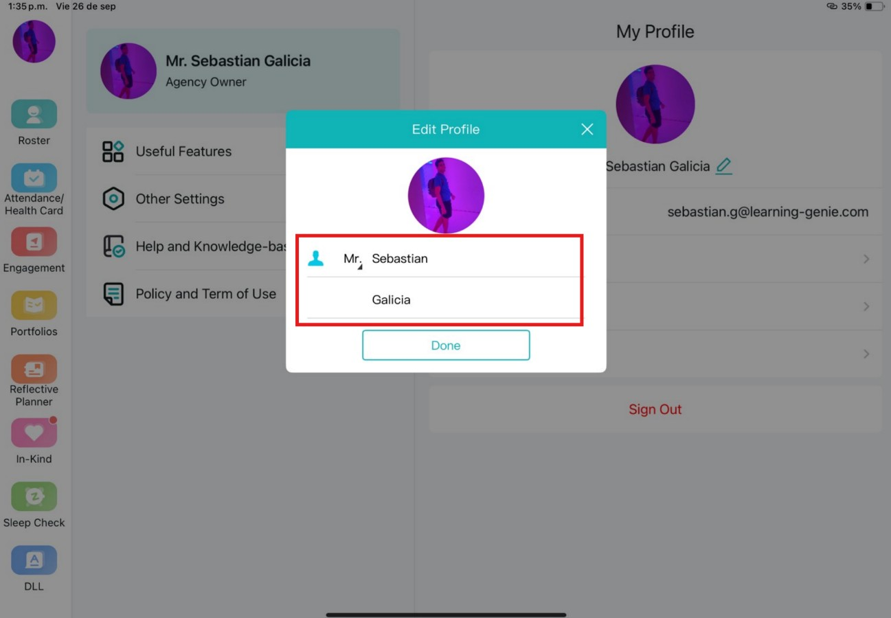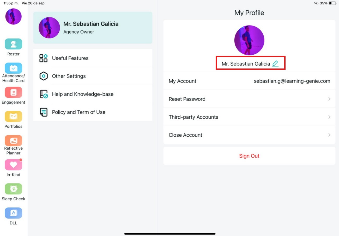 If you need to update your account name in the Learning Genie Educator App, you can easily do it from your profile settings. Follow the steps below: