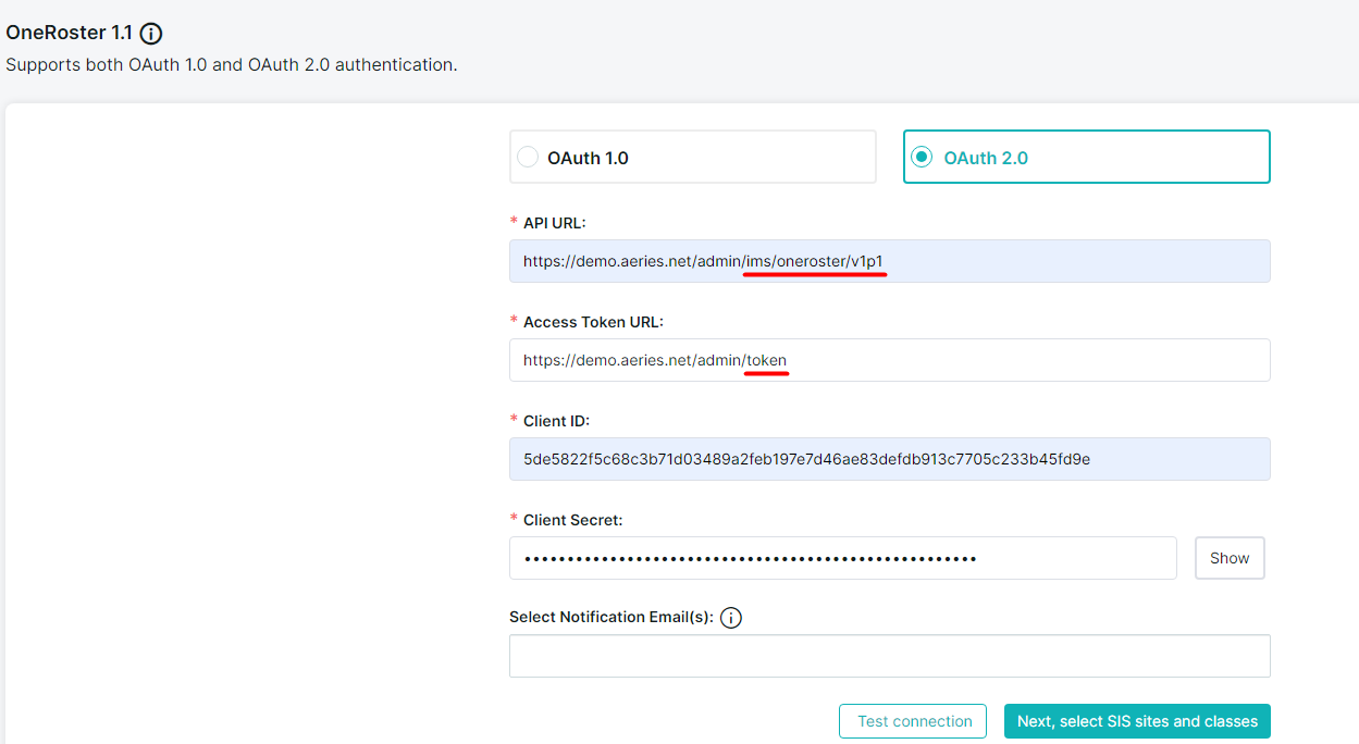 To connect through One Roster API, your roster system should be Aeries and it should be hosted by Aeries, not self-hosted.