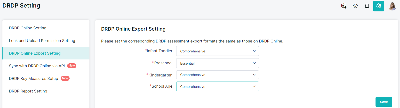 3. On DRDP Online Export Setting, match the views you have in DRDP Online.