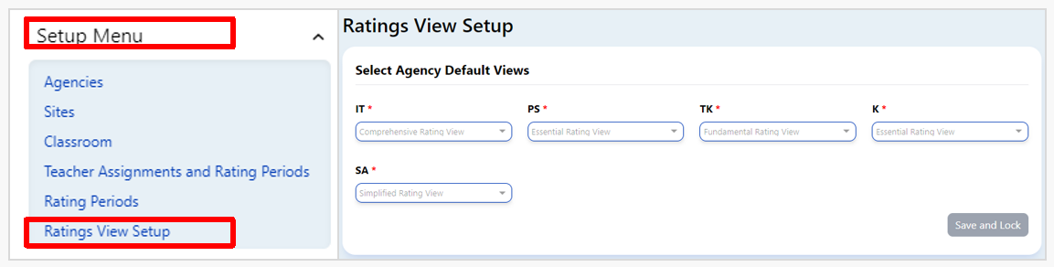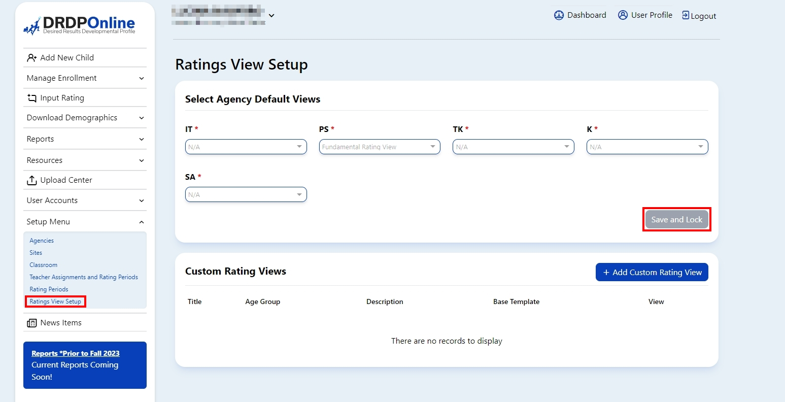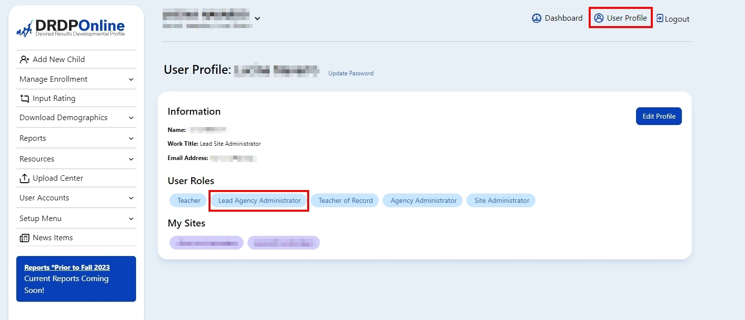 Ensure you are the Lead Agency Administrator by clicking "User Profile" in the top right corner. (You need this level of access for the view selection and rating period confirmation steps)