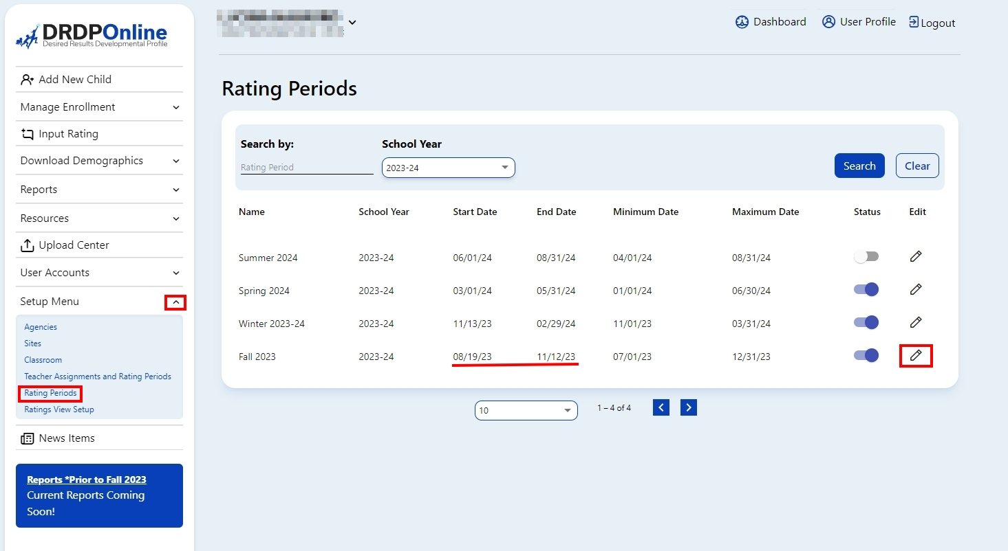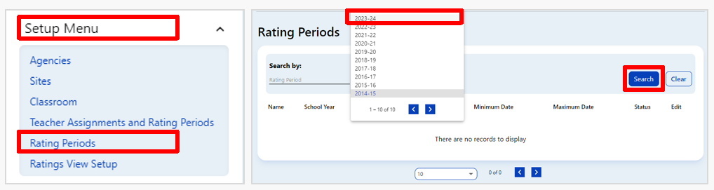 Before proceeding to the next step, make sure you have set up the rating periods for the current school year in DRDP Online.