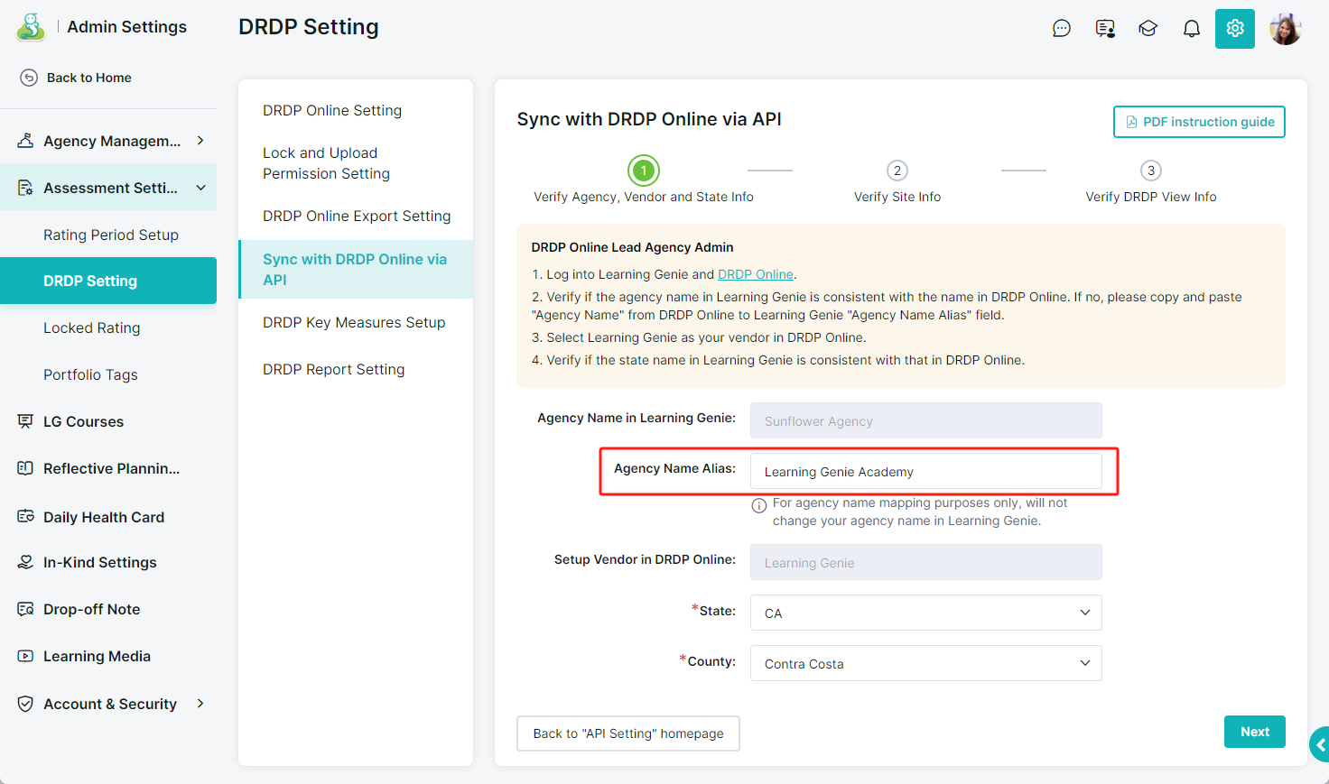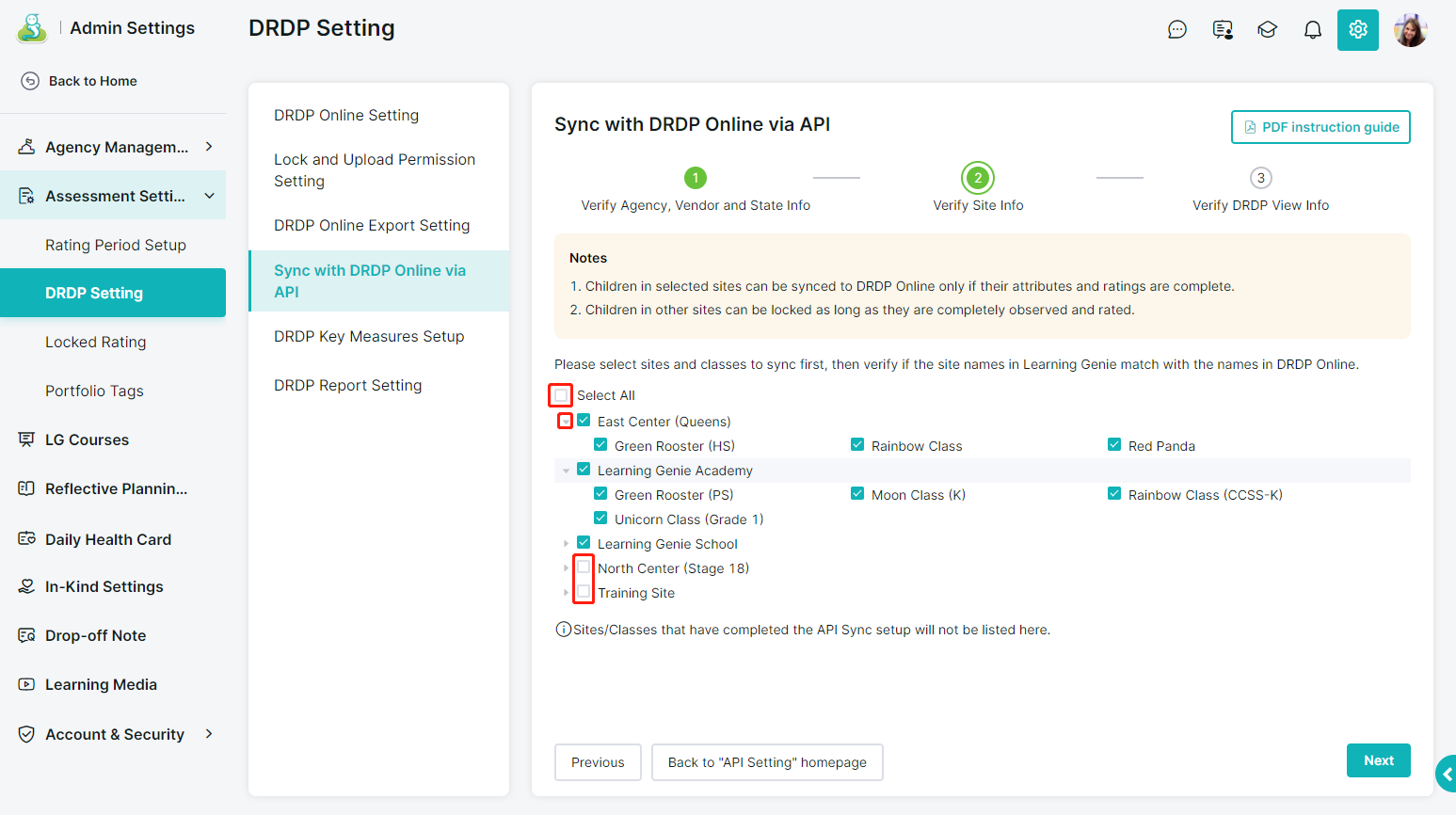 In this guide, we'll go through the necessary steps needed to finish your Learning Genie and DRDP Online integration setup.