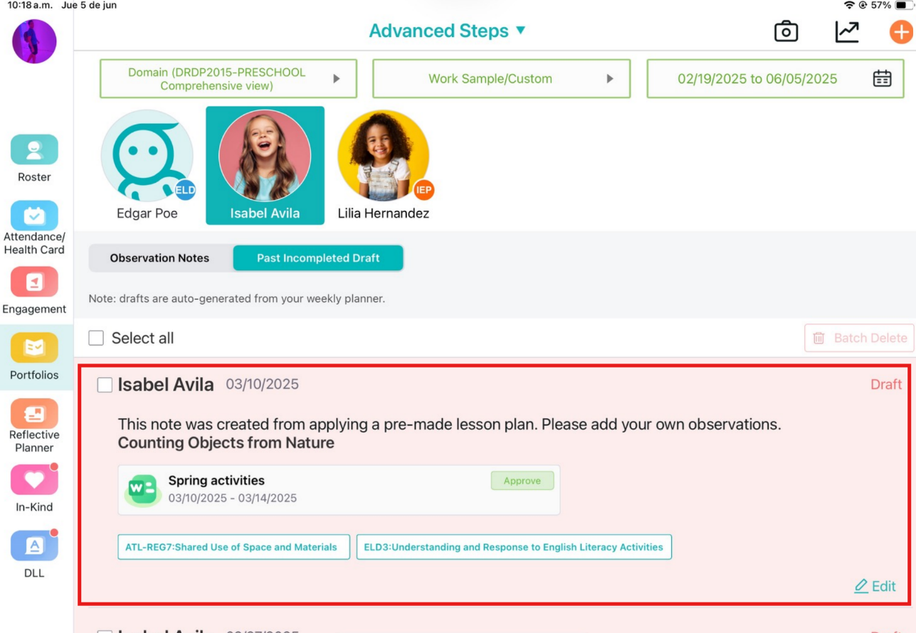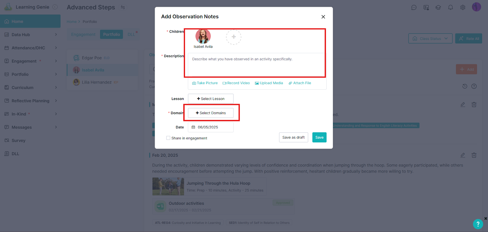 With just a few steps, you can save your observation as a draft right from the Learning Genie app or website!