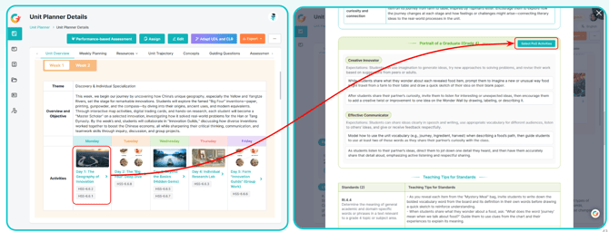 1. Unit Planner Setup: Ensure you have selected your district's "Portrait of a Graduate" traits during the initial setup of your Unit Planner, as this automatically embeds the competencies into your lesson goals.