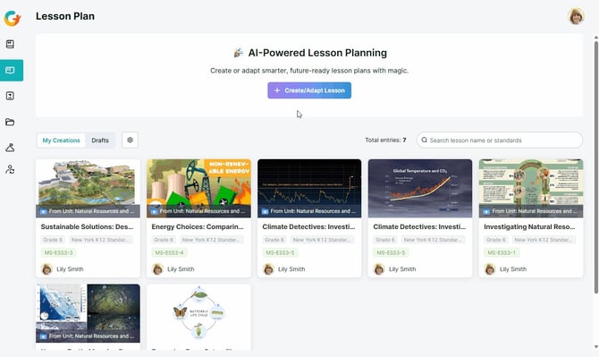 - Create or Adapt: Access the Lesson Plan module to create a new lesson or adapt an existing one.