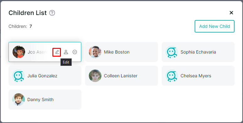 3. Locate the child you wish to edit, hover over this child, and click the edit pencil. You can modify the child’s framework on the “Basic Information” tab.
