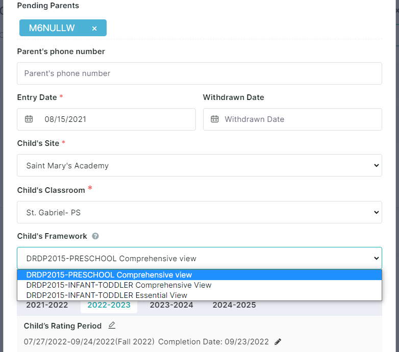In the past, children must follow the classroom framework. Learning Genie has added a new ability to enable agencies to customize DRDP-IT or DRDP-PS framework for children in the same class.