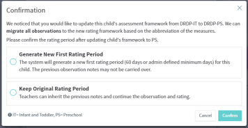 - If all children in this class are using the DRDP-IT framework, all their frameworks will be updated.