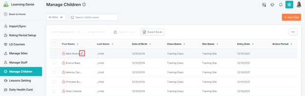 - Find the child whose information you want to update. Hover over their name and click the pencil icon.