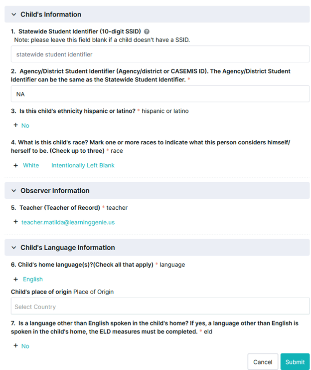 - Additional Information: Includes DRDP-related fields (especially for CA users).