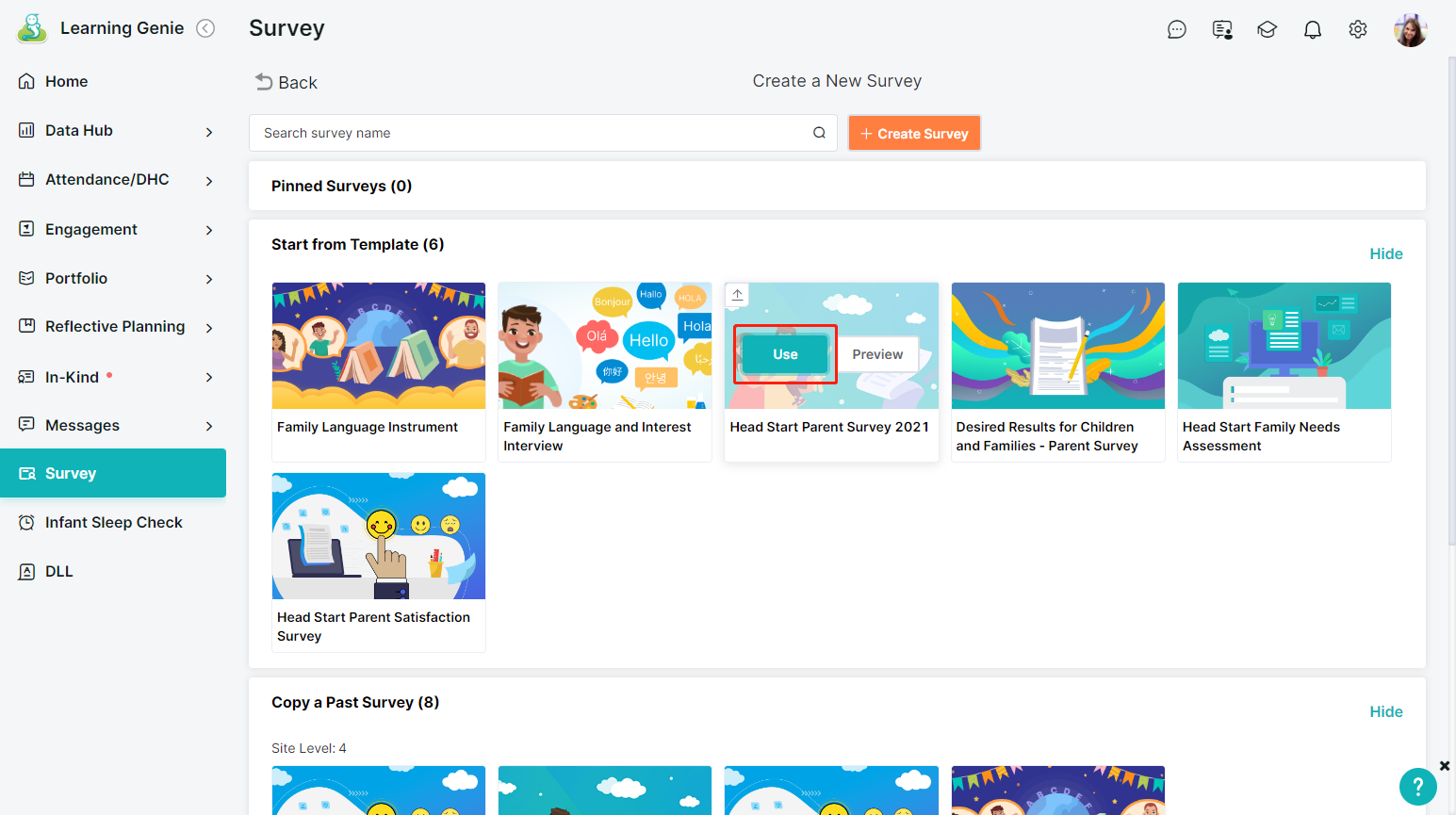 4. Select the survey template you wish to edit and hover on it. Then, click on "Use".