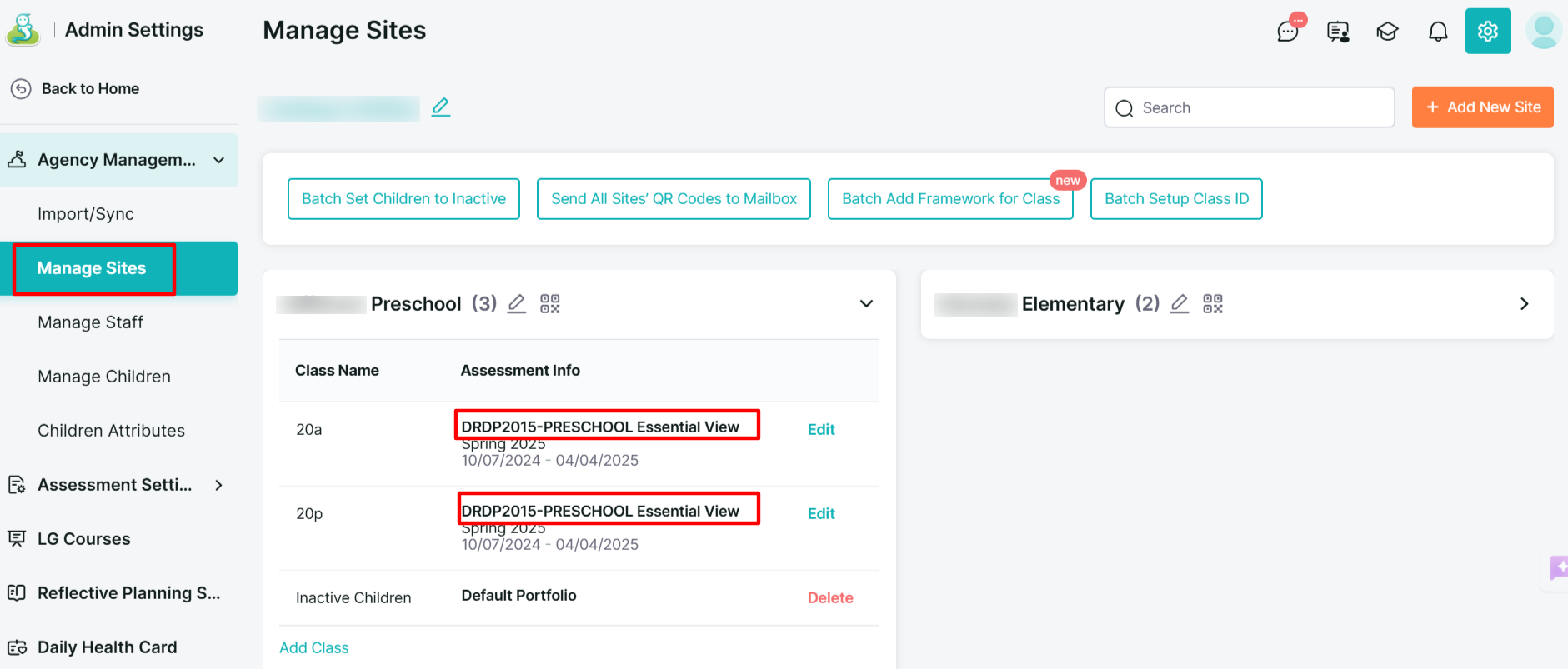 Note: To check the view/framework you're using in Learning Genie: Go to Admin Settings > Manage Sites.