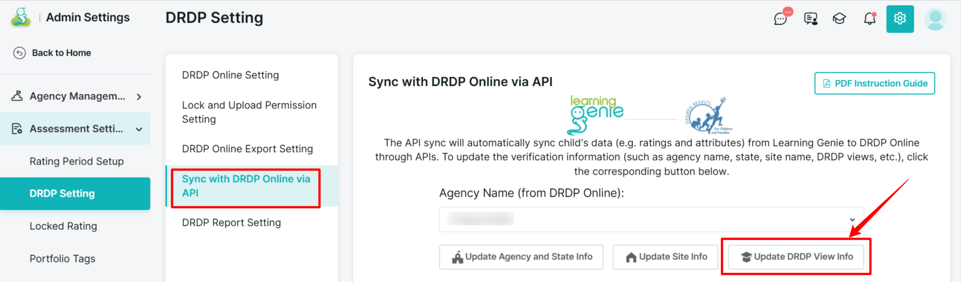 When syncing DRDP Online data with Learning Genie, you may encounter an upload error if the DRDP rating views do not match or are set to N/A. Here's how to resolve this issue: