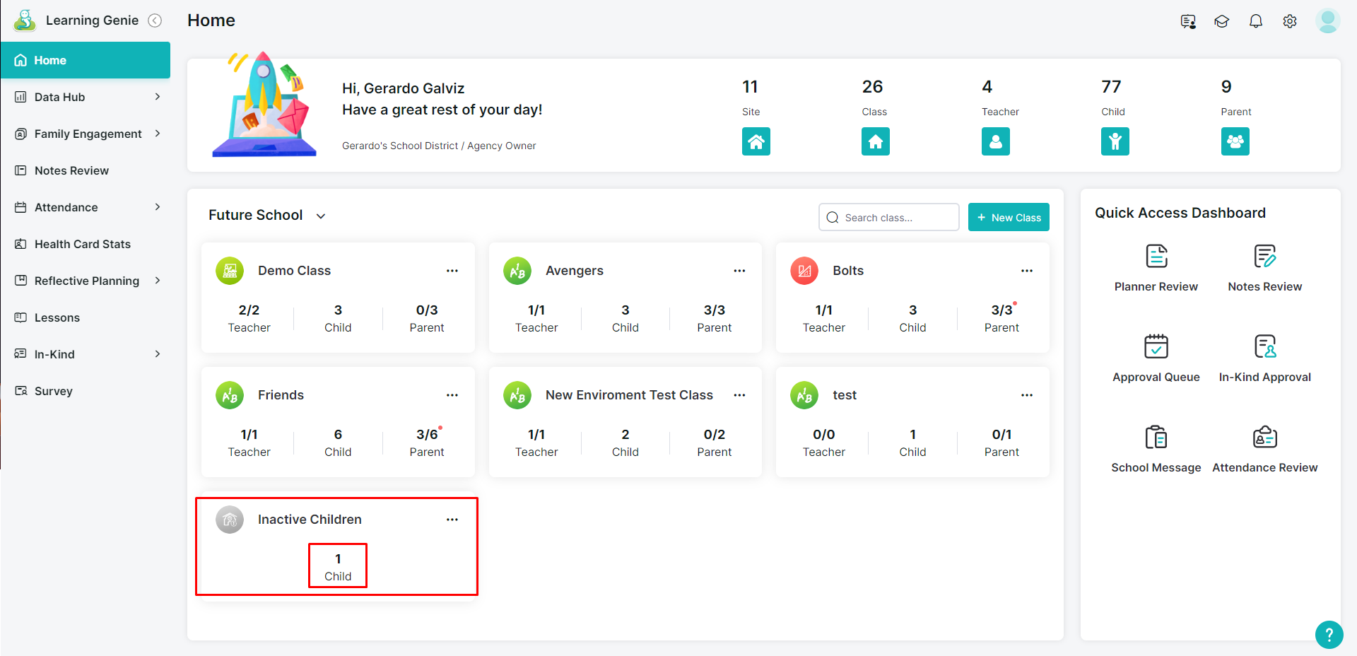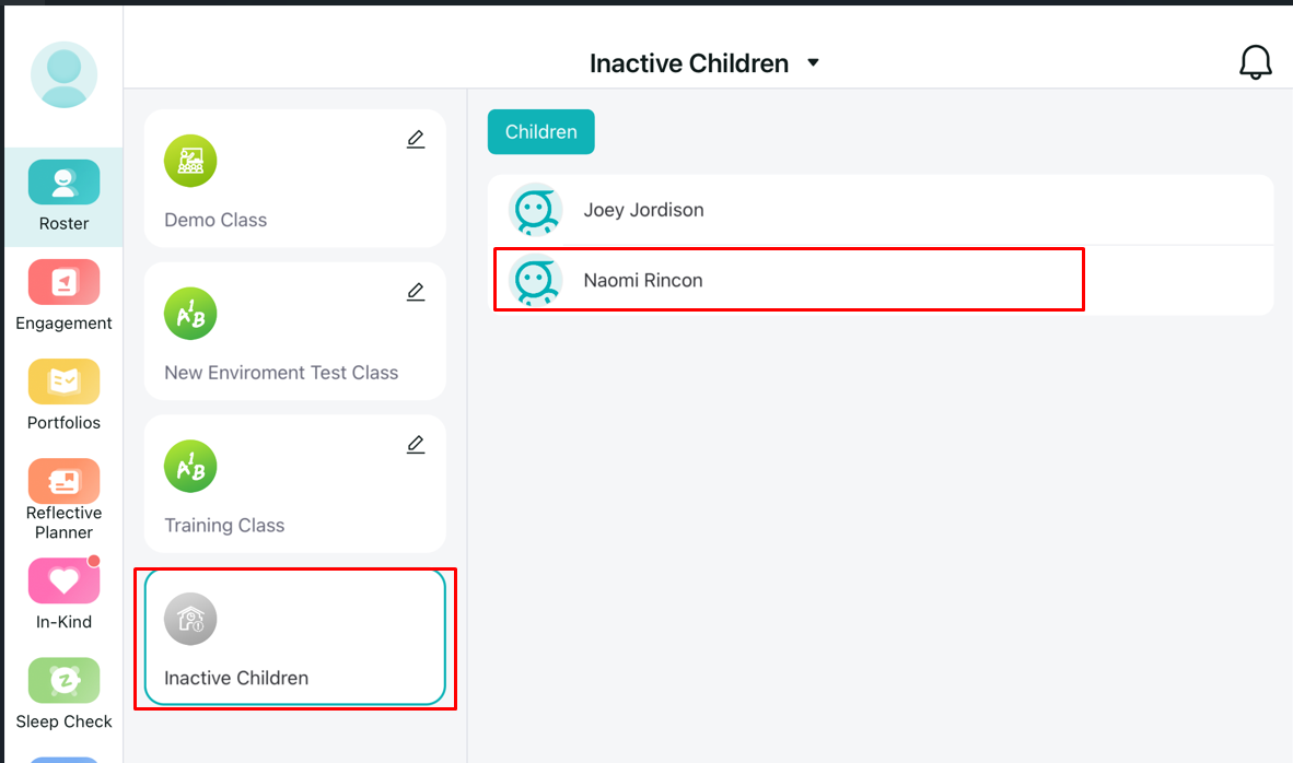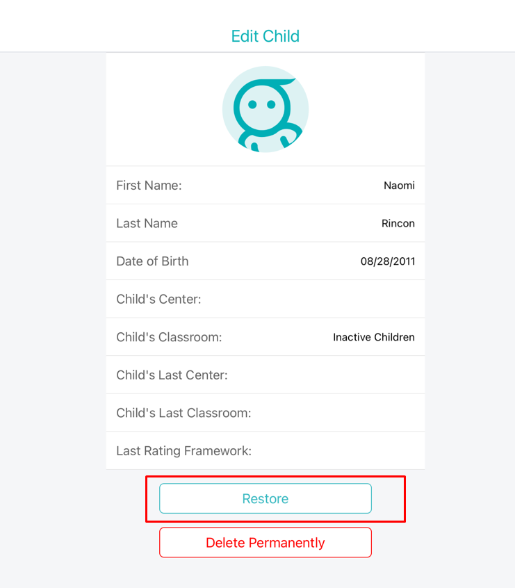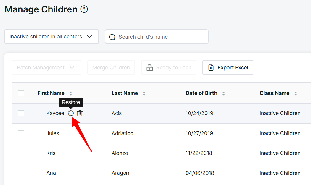 When a previously enrolled child returns to your program, you can easily restore their profile from the inactive list. All their data remains intact.