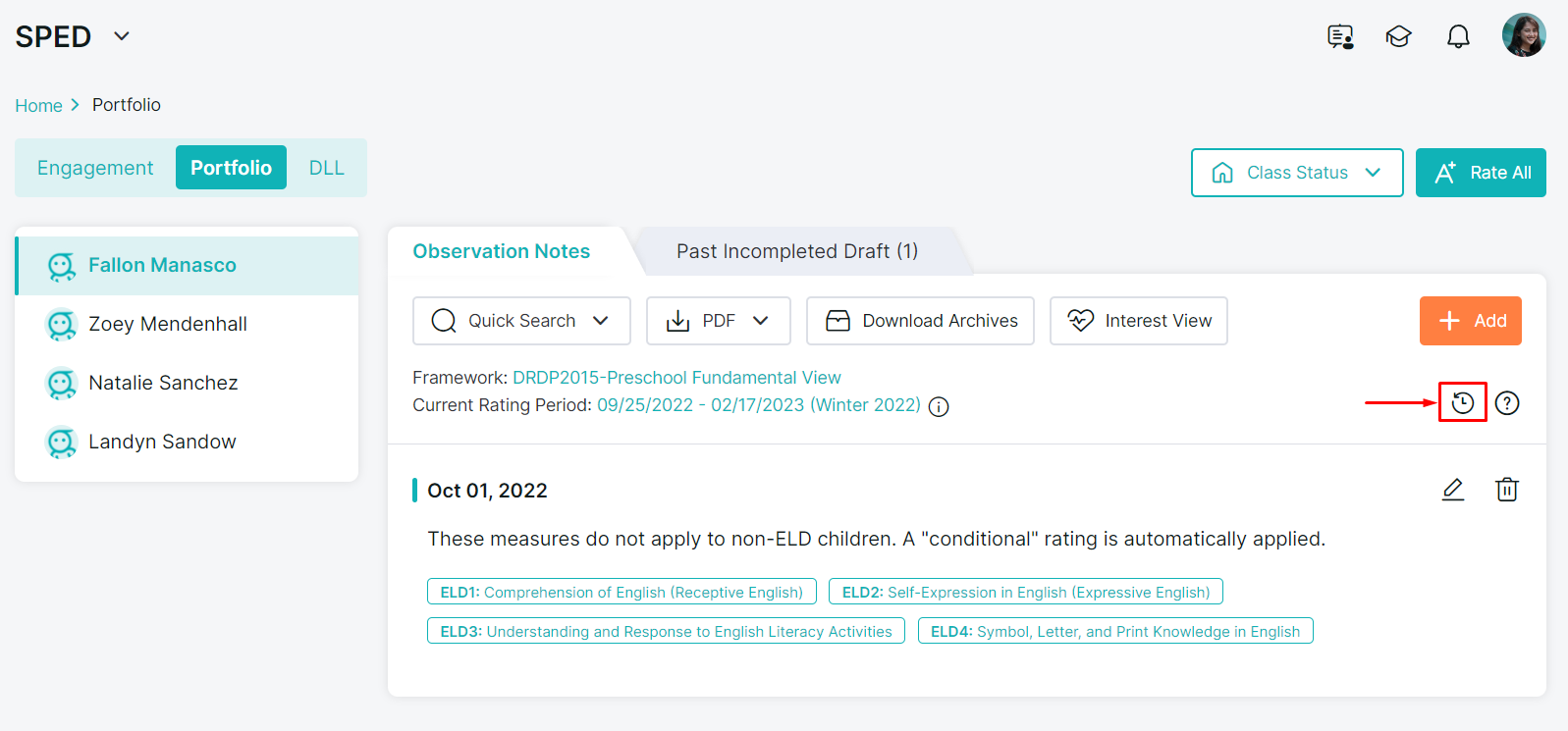 Your selected notes will be restored and available again in the child’s portfolio!