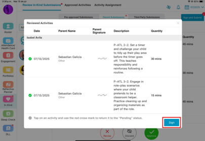 4. At last, click the “Sign and Submit” button to sign off on these activities.