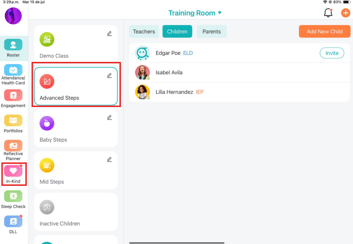 1. To access the In-Kind activities, log into your Learning Genie App, and click on a classroom.2. Then, select the “In-Kind” option on the left-hand side.