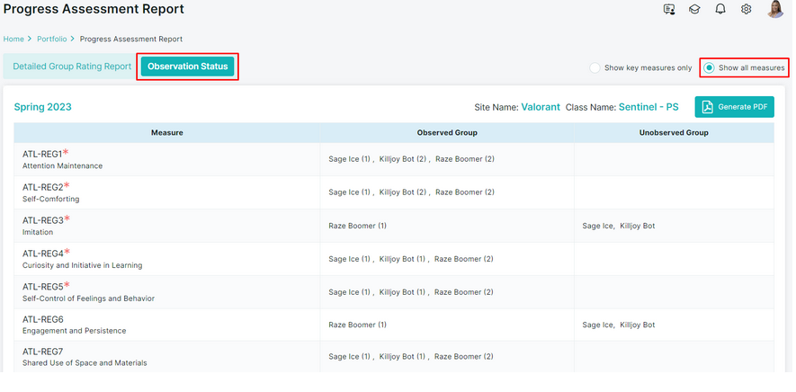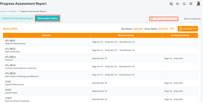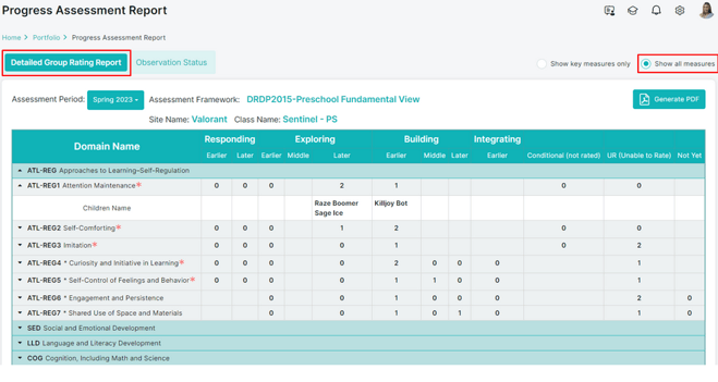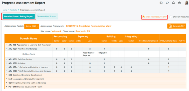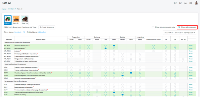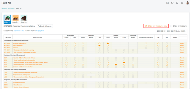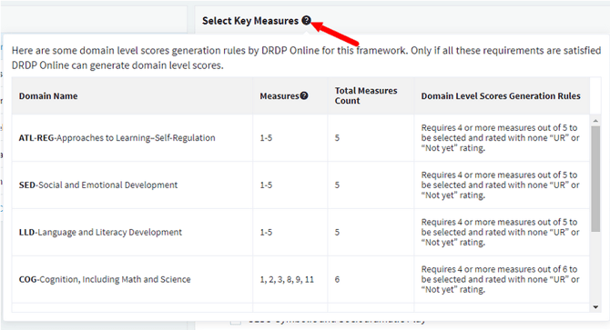 . You can use it as a reference when selecting key measures so you are aware if it satisfies DRDP Online's requirement for generating domain-level scores for the reports.