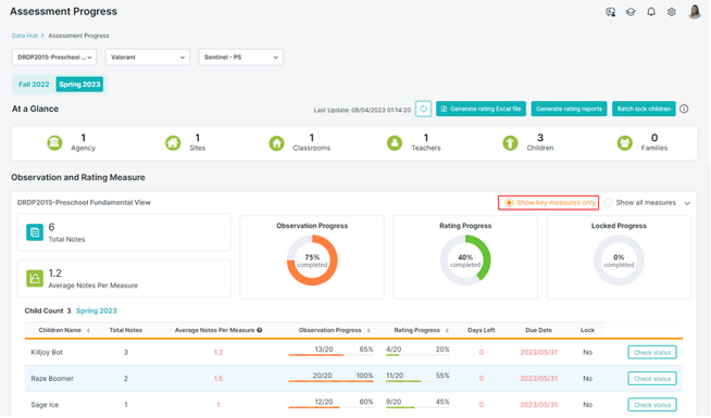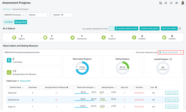This feature is designed to let agencies emphasize certain measures in a complete set of a framework. Teachers will be able to see their rating progress for both key sets of measures and the complete set of measures.