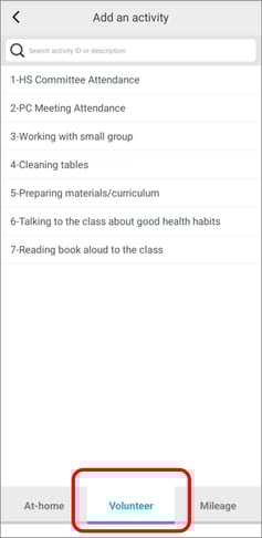 - This will open a list of available volunteer activities.