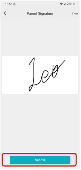 - Use your finger to sign your name on the screen.