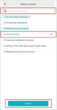 - Once you find the activity, tap “Select.”
