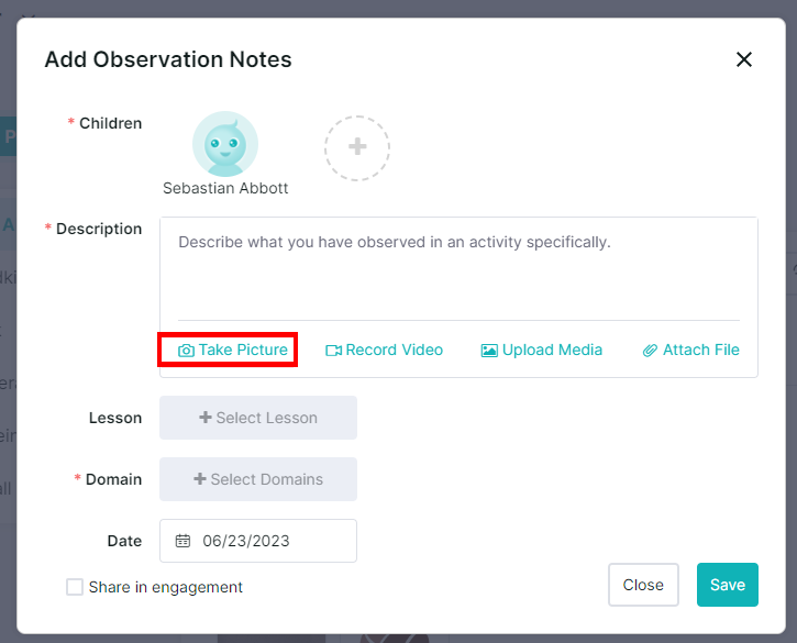 You can now take real-time photos and attach them directly to your observation notes — all from the Learning Genie Web Portal (no need to upload separately!).