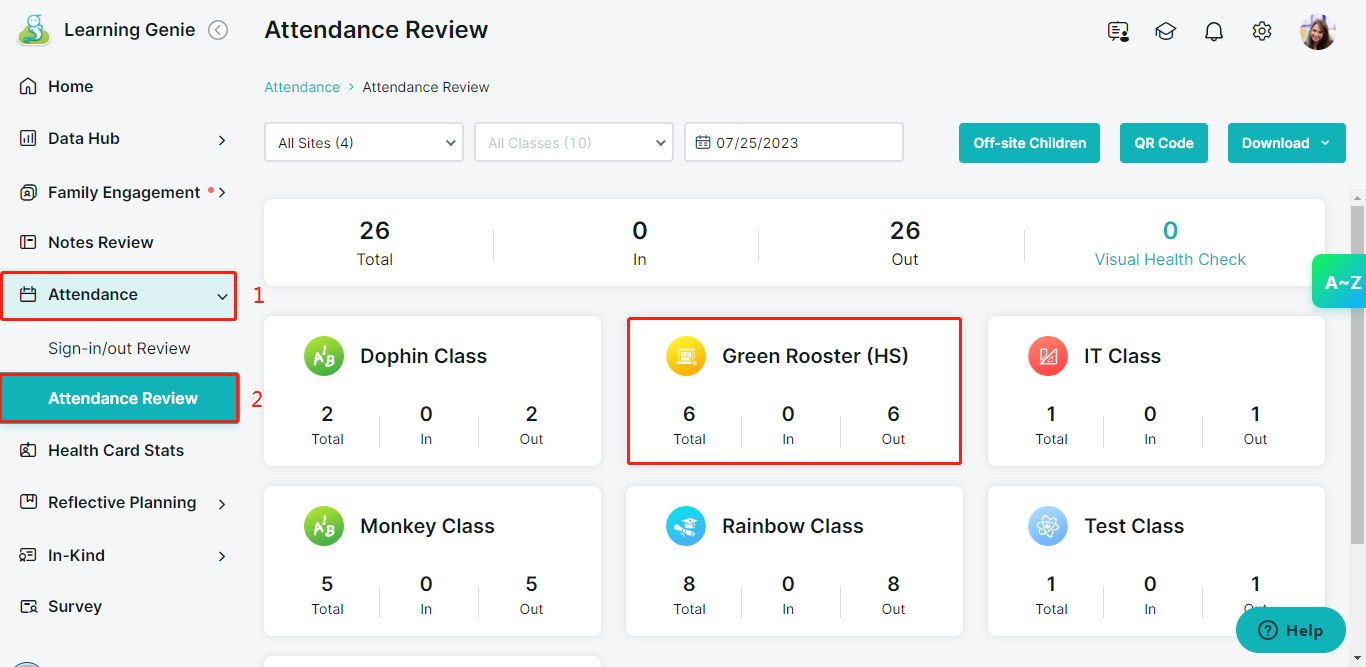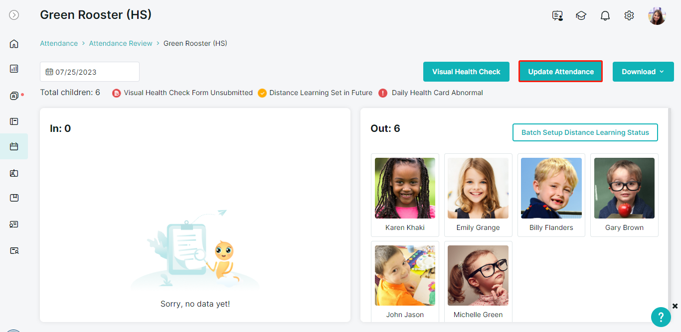 Note: if a child was set to In-quarantine status, his/her attendance data can not be updated.