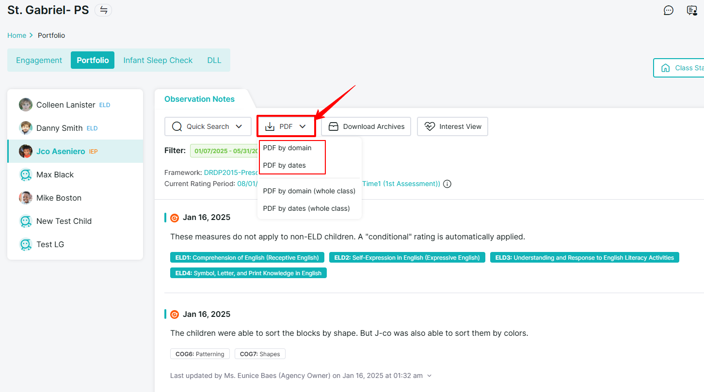 How to View and Download Child Observation Notes (Portfolio) by Rating Period
