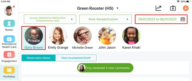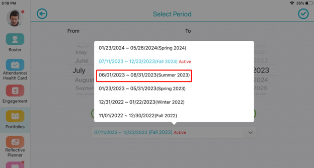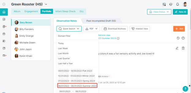 Learning Genie provides a Quick Search feature that allows you to access observations from earlier timeframes or rating periods. This feature is available on both the Learning Genie Web Portal and the Learning Genie Educator App.
